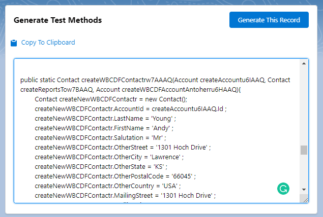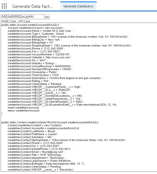 With the Generate DataFactory, Devs can generate series of test methods using the deepest record in a relationship. It also generates all the required fields using actual records, which Devs use for testing their solution.