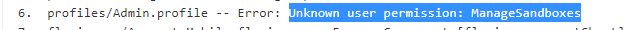 Have you ever got this error message when trying to deploy Admin profile from one sandbox to another sandbox?