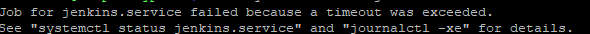 You might get a timeout error at the end of the process: “Job for Jenkins.service failed because a timeout was exceeded.”